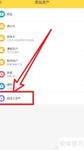 2、 进入添加资产页面,点击底部自定义添加资产选项即可完成操作。