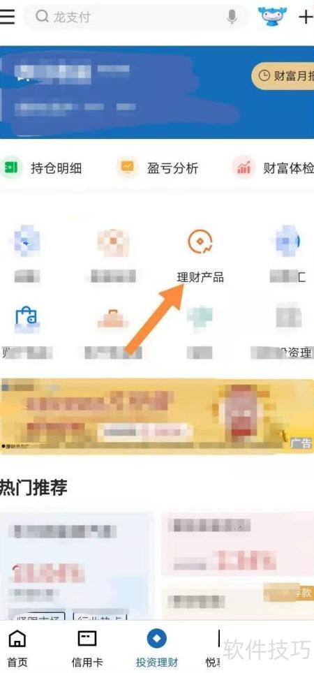 1、 打开手机银行应用,选择底部投资理财功能。