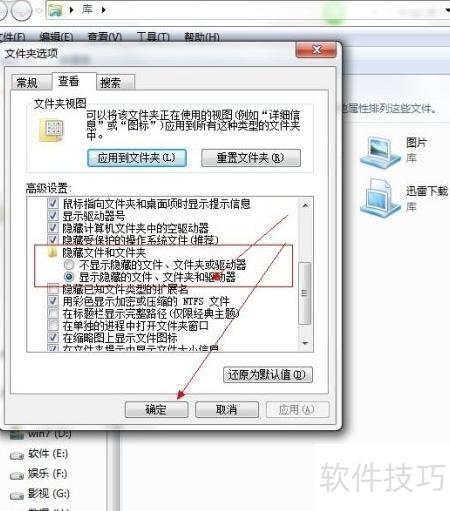 8、 按照图示操作,显示隐藏文件夹即可。