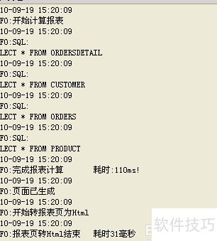 10、 待报表在浏览器完整显示后,查看日志窗口中的信息内容。