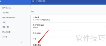 4、 进入设置中的外观页面,选择自定义字体功能。