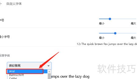 介绍谷歌浏览器中如何设置自定义Arial字体的方法。