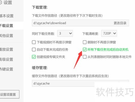 7、 启用下载完毕后自动关机功能。