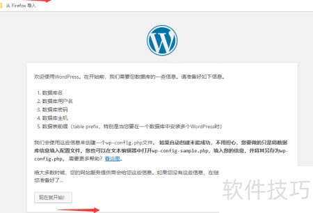 4、 在浏览器地址栏输入网站目录名,启动WordPress程序安装流程。