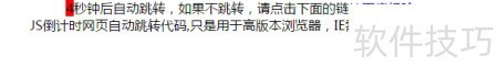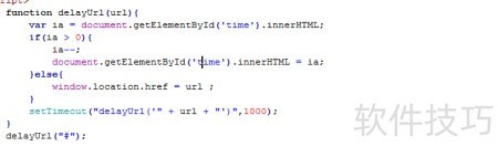 5、 通过编写并嵌入JavaScript代码,实现页面跳转前的倒计时功能。具体方法是定义一个名为`delayUrl`的函数,该函数接收目标跳转地址作为参数。函数内部首先获取页面中id为time的元素所显示的数值,表示剩余等待秒数。若该数值大于零,则将其减一并更新显示内容;否则,执行页面跳转,将浏览器重定向至指定URL。每次执行后,通过`setTimeout`方法设置延迟1000毫秒(即1秒)再次调用自身,形成递归循环,从而实现逐秒倒数的效果。初始调用时传入目标链接地址,此处以作为占位符,实际使用时可替换为具体的网址。该脚本在页面加载完成后立即运行,确保倒计时与跳转逻辑正常触发。整个过程无需外部依赖,仅依靠原生JavaScript即可完成,适用于需要自动跳转并提示用户等待时间的场景,如登录成功后的跳转提示或错误页面的自动返回等。