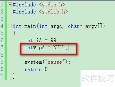 5、 声明一个整型指针变量pA并初始化为空值。