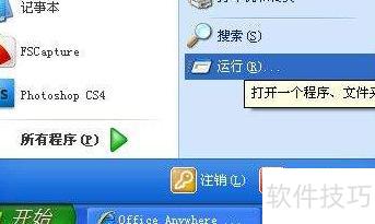 3、 打开开始菜单,选择运行选项。
