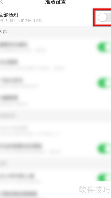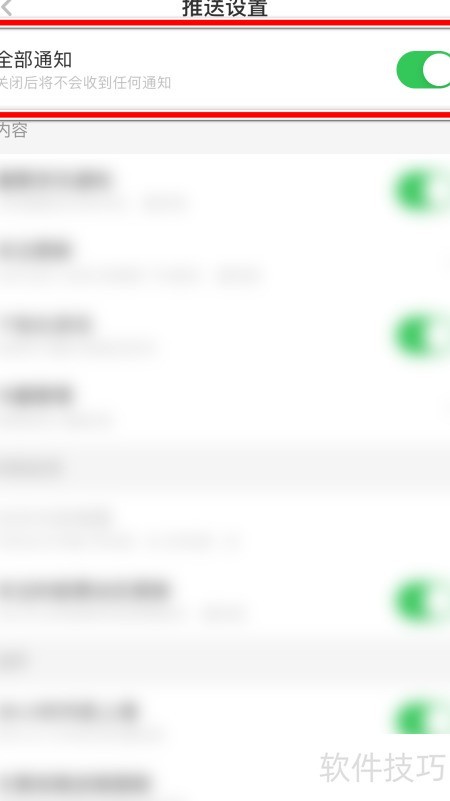 8、 开启全部通知功能后的开关选项。
