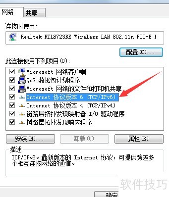 4、 进入属性页,选择IPv6,操作所示
