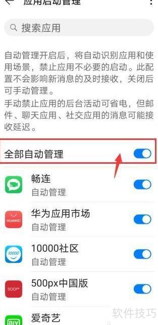 8、 点击全部自动管理选项。