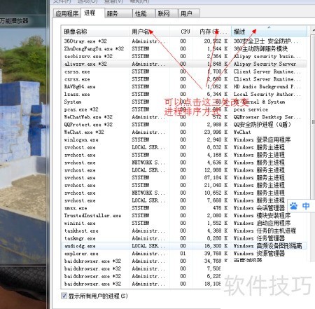 2、 找到问题根源后,通过点击用户名、内存或描述进行排序,可使进程排列稳定不变,有效解决进程操作中的困扰。