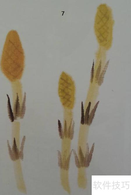 2、 以淡驼色描绘草茎,末尾轻巧向下撇出。
