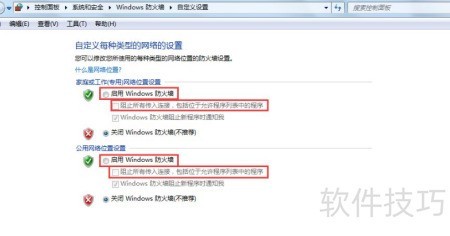 6、 在自定义设置里,选择开启Windows防火墙,并勾选阻止所有传入连接的选项,包括程序列表中的项目。