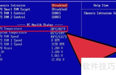 5、 进入BIOS后查找硬件监控相关选项,不同品牌界面布局各异,通常可见H/W Monitor、状态信息或PC基本状态等名称的菜单项,仔细浏览各标签页即可找到。