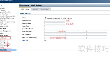 1、 先登录ILO进入服务器管理界面,配置SNMP相关信息。