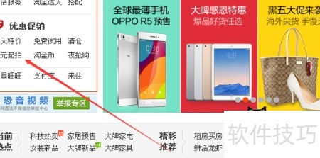 1、 登录淘宝网后,在左侧菜单选择一元起拍入口即可参与。