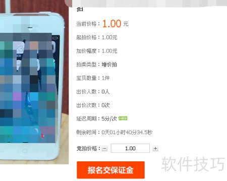 4、 查看当前价、起拍价及加价幅度,确认商品是否符合需求,再报名并缴纳保证金即可参与。