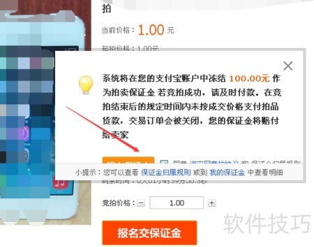 5、 勾选同意抢拍协议,保证金按商品价格确定。