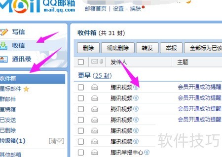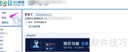 3、 邮箱登录成功,请点击收信按钮。