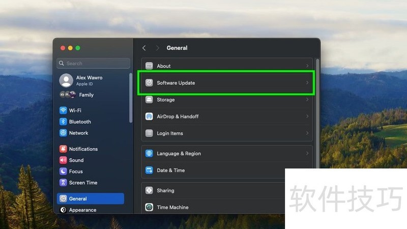5、 安装macOS Sonoma十分简便,只需通过苹果菜单即可操作。首先点击Mac桌面左上角的苹果标志,随后按照提示进行即可完成安装。