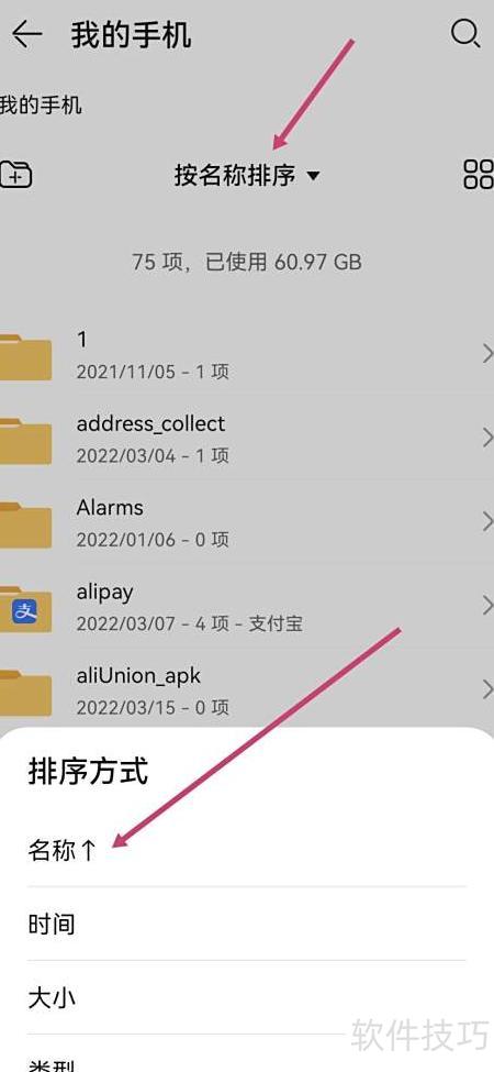 在手机中查找特定文件夹时,先打开文件管理应用,进入我的手机目录,点击按名称排序,然后从列表顶部依次向下浏览,即可快速定位目标文件夹。