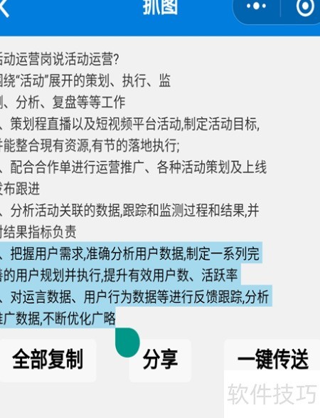 3、 识别文字后,长按可复制部分内容,点击传送按钮,即可一键发送至电脑。