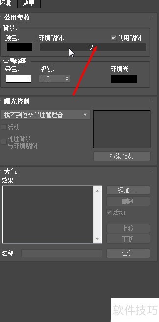 1、 启动3ds Max并进入主界面,按下快捷键8打开环境与效果面板。在环境贴图区域点击无,选择位图,加载所需的HDRI贴图文件,完成初始贴图设置。
