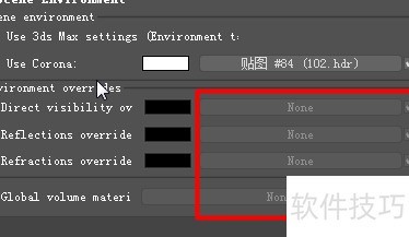 4、 还可以通过调整渲染设置来实现,进入渲染设置面板后,切换到场景选项卡,在场景环境选项中启用Corona,并将所需的环境材质球拖入对应位置。此外,建议尝试使用不同类型或功能的环境贴图,以获得更理想的光影效果和画面表现,提升整体渲染质量。