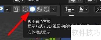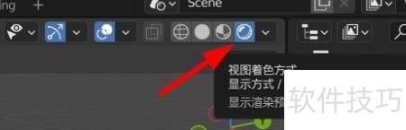 2、 点击右侧圆形按钮,切换至渲染预览模式。