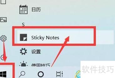 1、 点击屏幕左下角开始按钮,找到并打开StickyNotes应用即可使用便签功能。