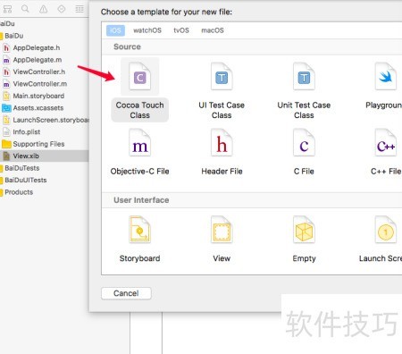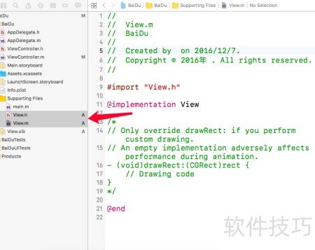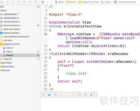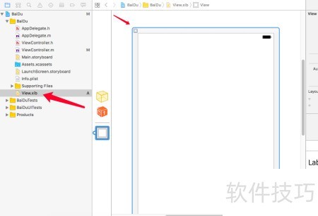 17、 返回工程,选中View.xib文件,所示。