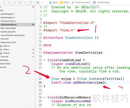 28、 在view.h中添加图1所示代码,同时在view.m中插入图2对应的代码内容。