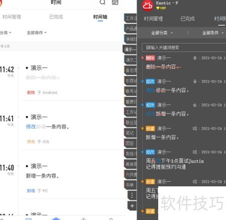 5、 此外,使用电脑上的便签软件记录信息更加安心。这类软件具备实用的时间轴功能,完整记录每一次新增、修改和删除操作的具体时间,以及对应的操作设备,如Windows、Web、Android、iOS或Mac端。凭借这一功能,无论是主动删除的内容,还是因操作失误而丢失的信息,都能通过时间轴快速追溯并恢复,有效避免数据遗失,让用户在日常记录中更加高效、安全、无忧。