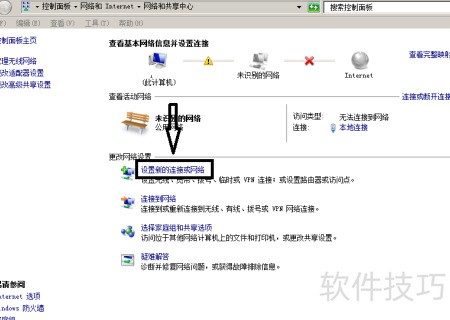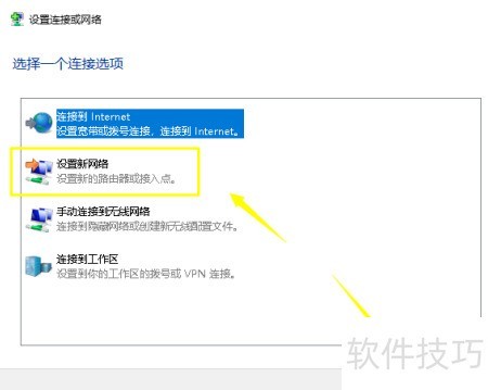 2、 点击设置新网络连接,操作见下图