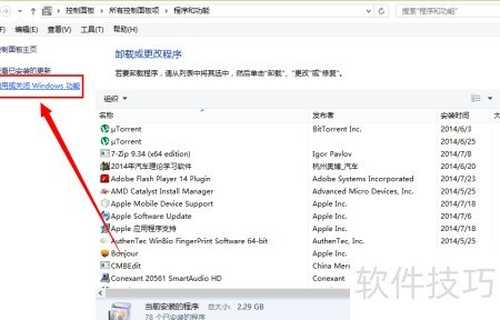 5、 进入系统设置中的程序启用与关闭界面。