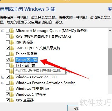 6、 向下滚动查找telnet客户端选项