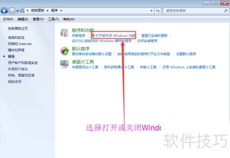 2、 点击程序选项,按图示操作以开启telnet功能。