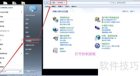 1、 点击开始菜单,进入控制面板并开启telnet功能,操作步骤所示。