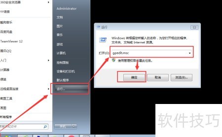 5、 点击开始菜单,选择运行,输入gpedit.msc并回车,即可打开组策略编辑器,具体操作所示。