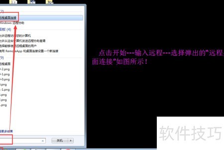 8、 点击开始菜单,输入远程,选择远程桌面连接功能即可。