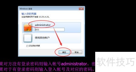 10、 选择远程桌面连接,点击administrator账户,输入管理员密码;若未设置密码,直接确认即可,操作所示。