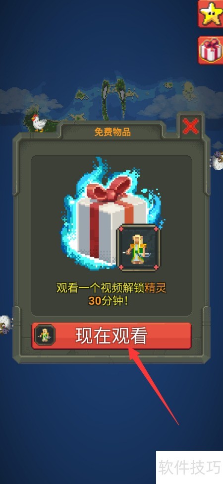 3、 广告结束后可领取礼盒,开启后能获得半小时精灵使用权限。