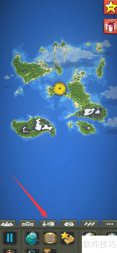 1、 进入游戏主界面,点击箭头所指图标即可开启下一步操作。