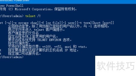8、 要了解telnet的具体使用方法,可在命令行输入 telnet /? 查看详细说明。