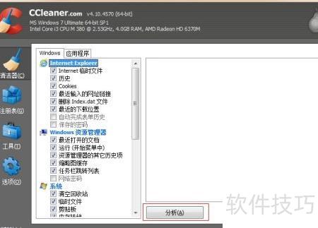 4、 第二种方法是借助系统优化工具ccleaner来提升电脑性能。该软件具备多项实用功能,如垃圾清理、注册表修复和软件卸载等。其中最常用的是系统清理功能。操作时,先点击分析按钮,软件会自动扫描系统中的临时文件与冗余数据。待扫描完成后,确认无误,再点击运行清洁器,即可清除检测出的垃圾文件,释放磁盘空间,使系统运行更加流畅稳定。