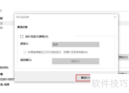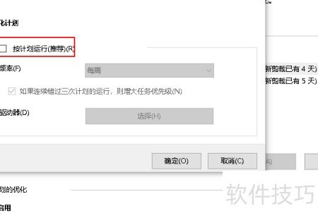 5、 取消勾选按计划运行,可阻止驱动器自动优化。
