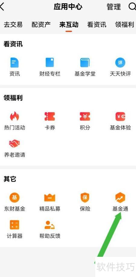 3、 进入应用中心,点击基金通即可完成操作。