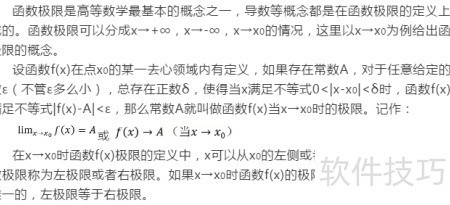 2、 函数极限是高等数学中的核心概念之一,导数等后续概念均建立在其基础之上。根据自变量趋近方式的不同,函数极限可分为x趋向正无穷、负无穷以及x趋向某一点x?等情况。此处以x趋向x?为例,阐述函数极限的基本定义与思想。