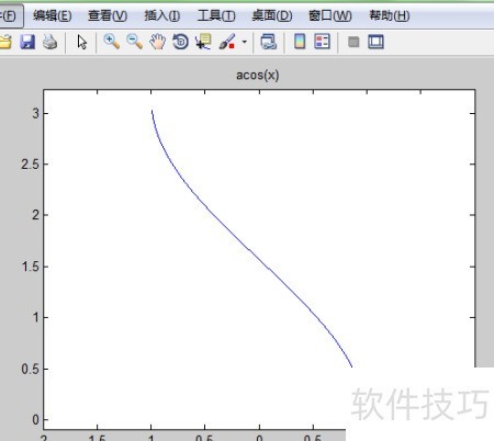 8、 反余弦函数acos(x)的使用方法及其图像展示,与数学教材中的arccos x表示略有不同。