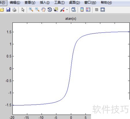 9、 反正切函数atan(x)的命令及其图像呈现,与数学教材中常见的arctan x表达形式略有不同。